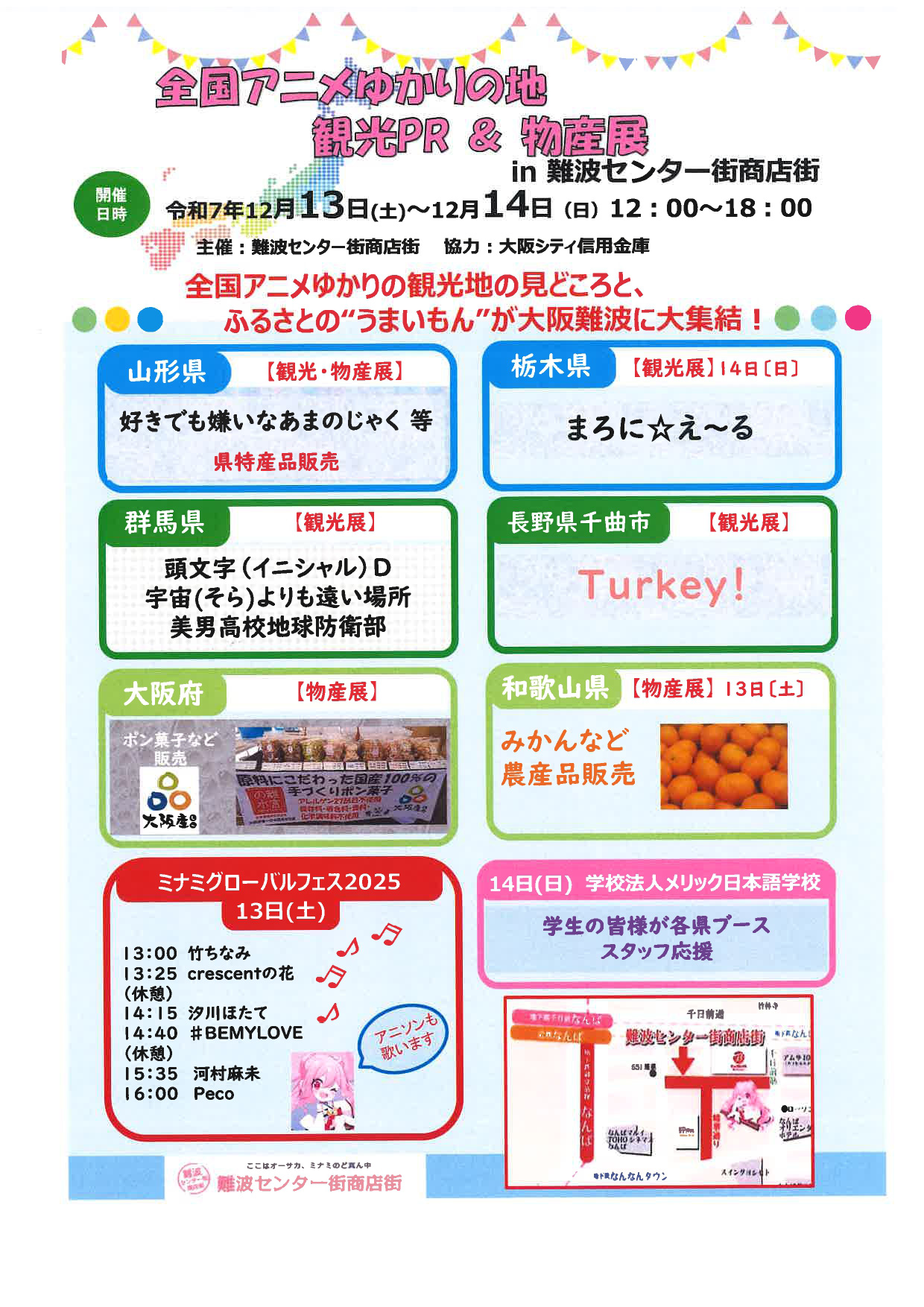 【12月13日・14日開催】全国アニメゆかりの地 観光PR&物産展in難波センター街